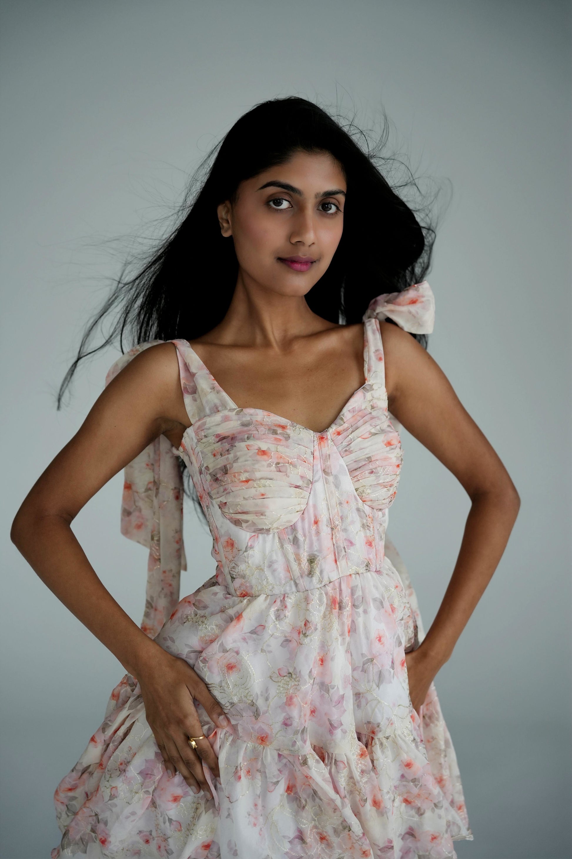 Built for the woman who knows her worth and isn't afraid to show it. The structured bodice gives you that perfect silhouette while the flowing ruffles let you move, laugh, and live freely.