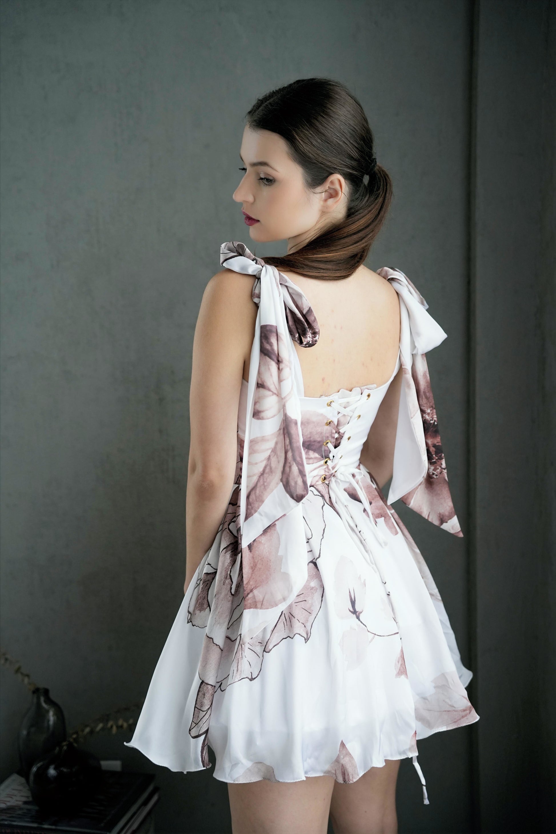 Built for the woman who commands attention without saying a word. The structured corset hugs you in all the right places while the flowing mini skirt moves with grace and confidence. Adjustable tie straps let you customize the perfect fit.