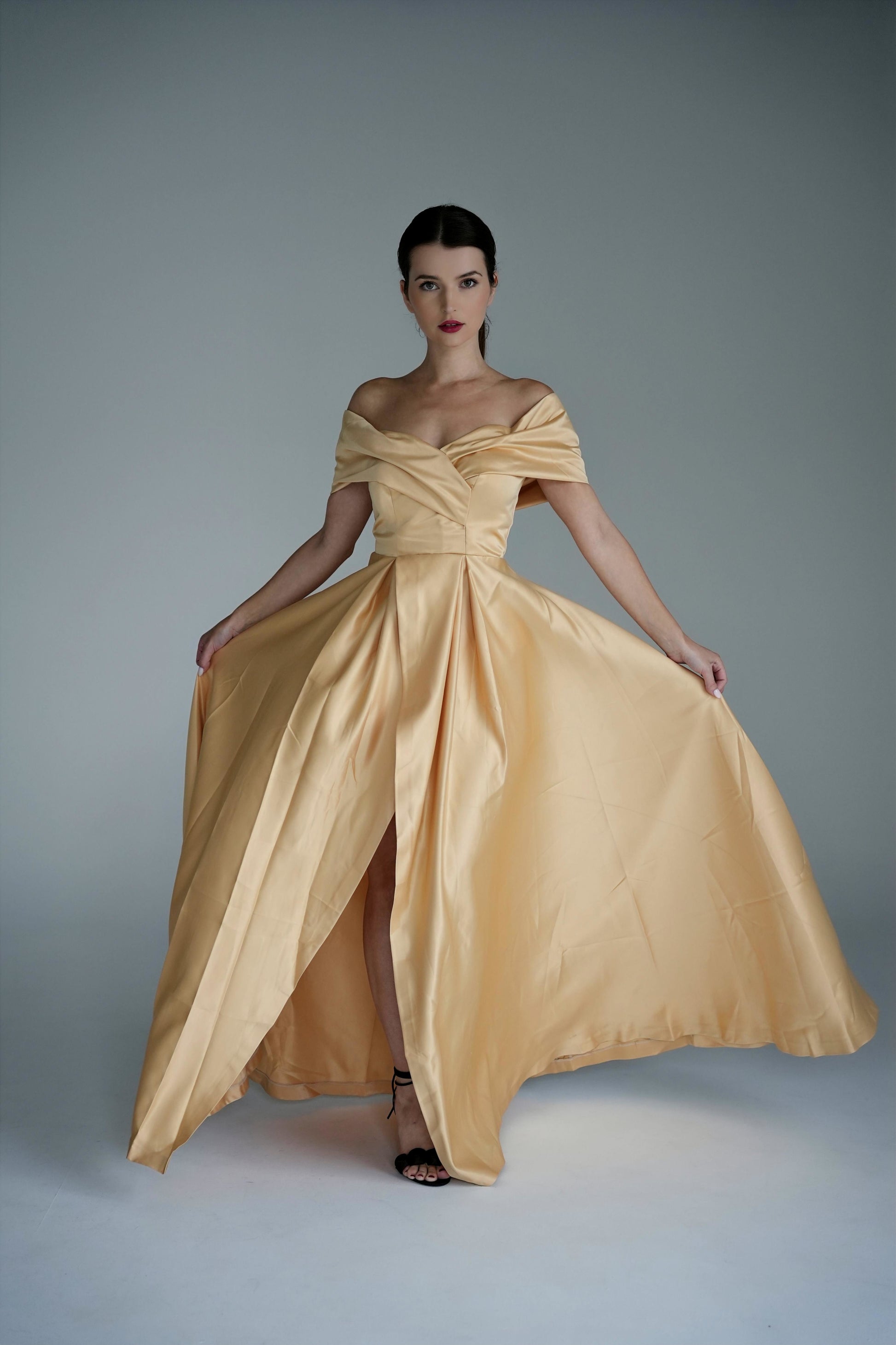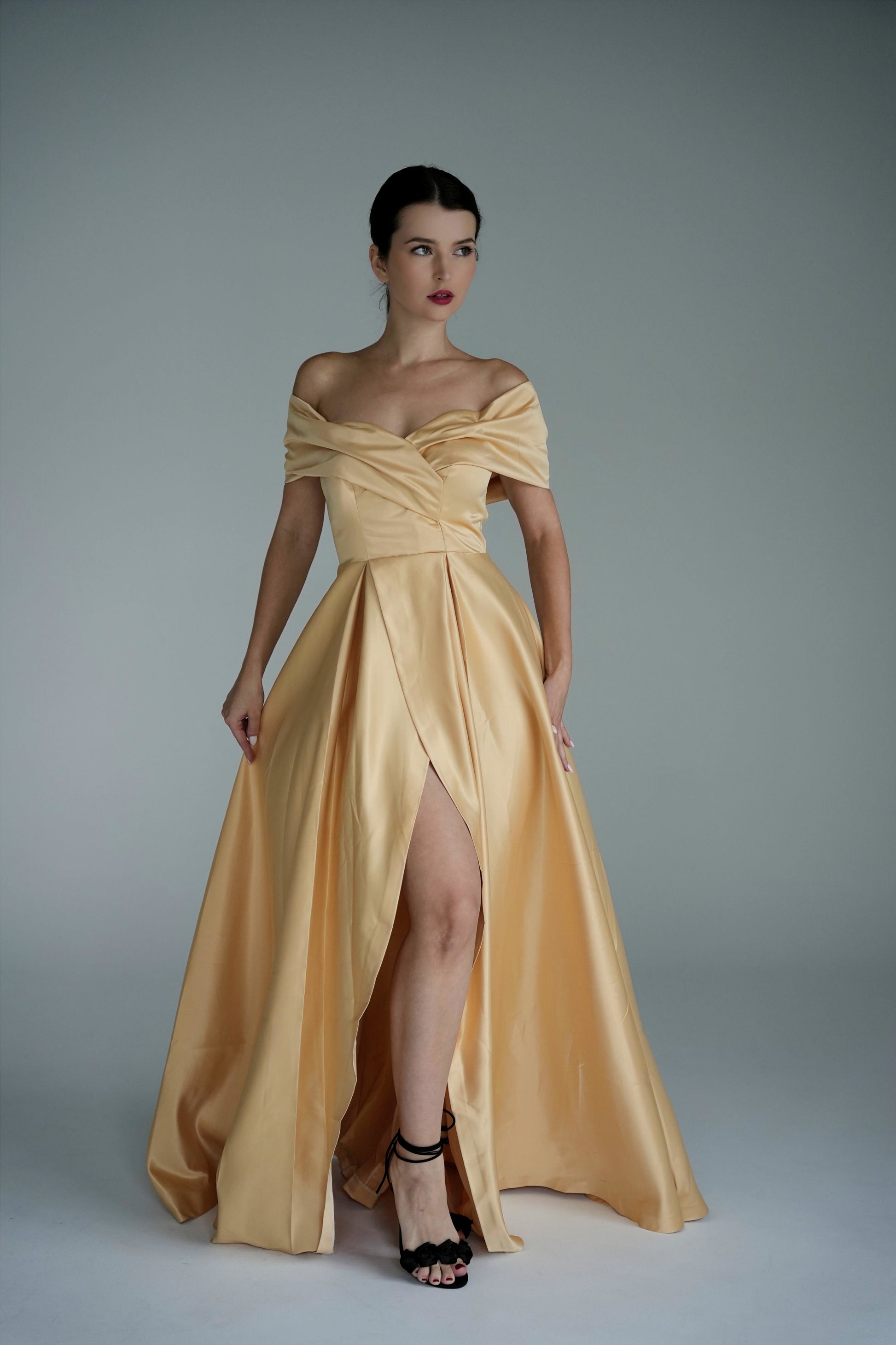Pure liquid gold meets red-carpet elegance – Mila Dreams is your show-stopping masterpiece. Style with an elegant updo, statement drop earrings, and classic heels for that unforgettable entrance.