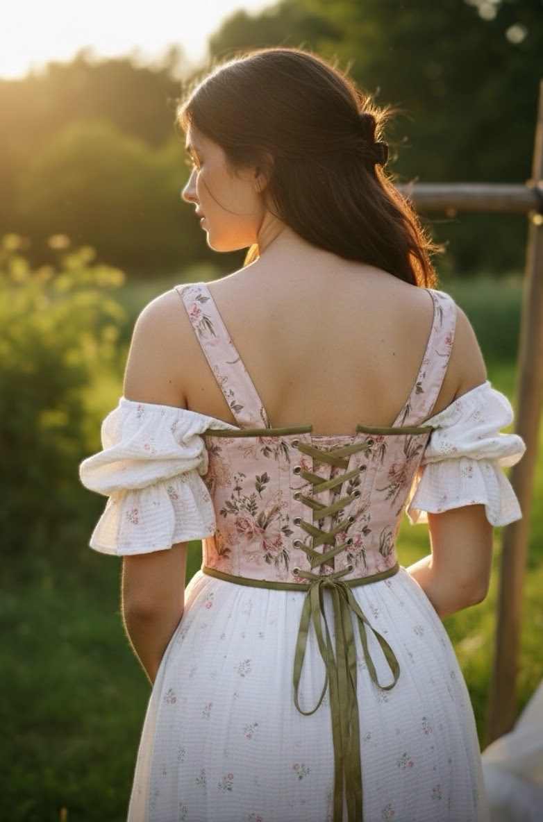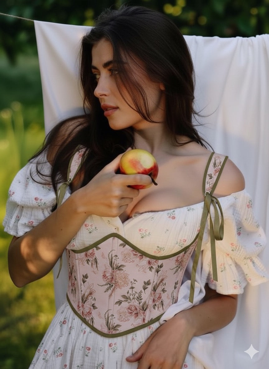 Crafted for the woman who dreams in florals and lives for cottage core aesthetics. The boned construction provides beautiful shape and support while the embroidered botanical motifs create an heirloom quality piece. This is timeless femininity with a fresh, garden-party twist.